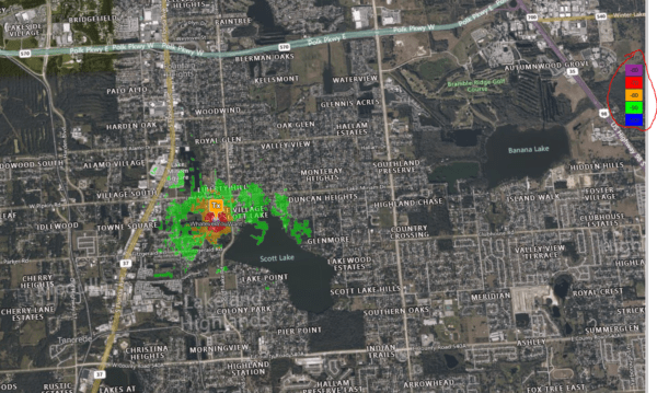 The tool will output a heatmap of the signal strength that your miner generates. The signal strength scale is located at the top right. Remember, because the signal strength is graphed in negative values, the lower the number the better the signal strength.